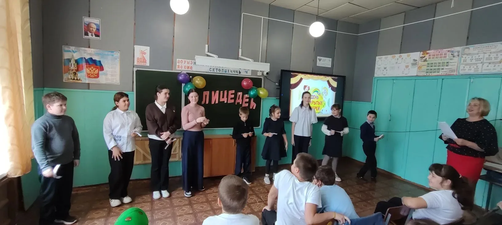 9 октября театральная студия "Лицедеи" распахнула свои двери и пригласила всех желающих, кто хочет связать свою жизнь с искусством. Главным событием этого дня стала увлекательная программа, подготовленная для самых юных зрителей - учеников начальной школы. Ребятам была предоставлена уникальная возможность познакомиться с миром театрального искусства изнутри. Янборисова Алина и Асеева Камиля, корифеи школьной сцены, провели с гостями мастер-классы по актёрскому мастерству: "Разминка актёра", " Вокальные упражнения", "Театральная азбука". С большим удовольствием зрители участвовали в игре " Театр- экспромт". С помощью мимики, жестов, интонации дети артистично передали характеры своих персонажей. День открытых дверей - это уникальная возможность приоткрыть завесу в волшебный мир театра.